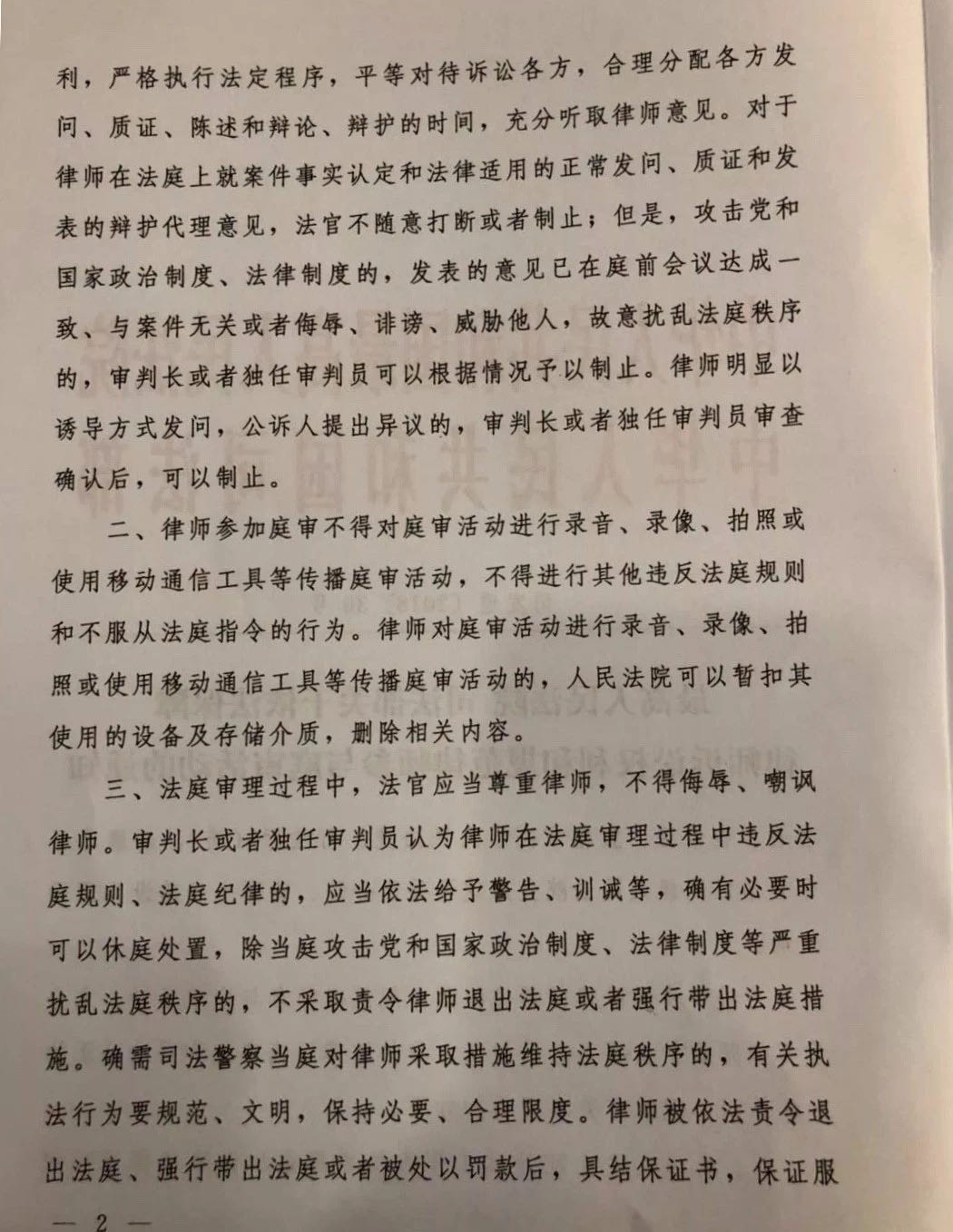 2. 法官应充分听取律师意见,不随意打断或者制止律师发表意见。